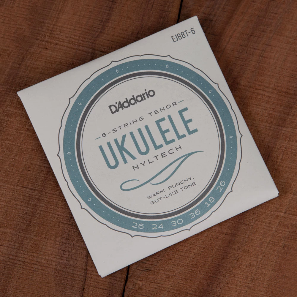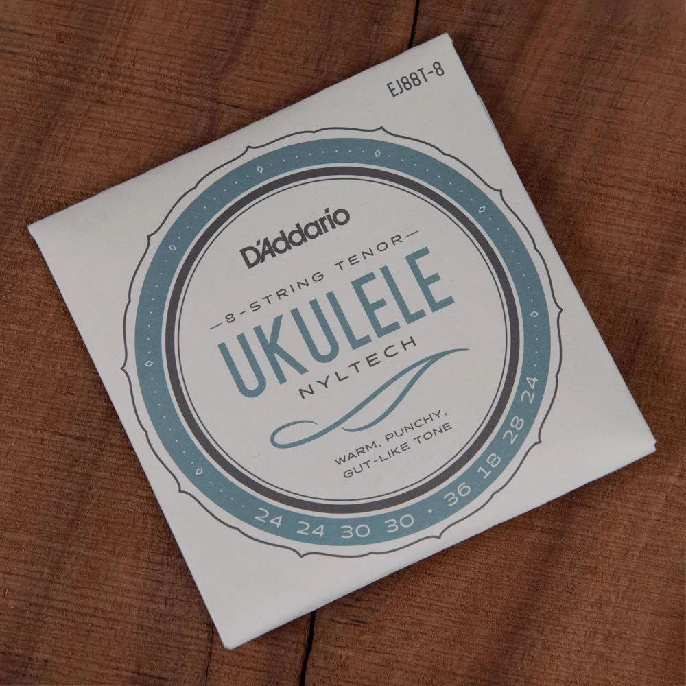 EJ88T-6 and EJ88T-8 are string sets for 6 and 8-string tenor ukulele, respectively. They are optimized for GCEA tuning. Nyltech strings utilize a proprietary formulation that produces the optimal combination of warm yet punchy tone, emulating the tonal characteristics of natural gut strings.
