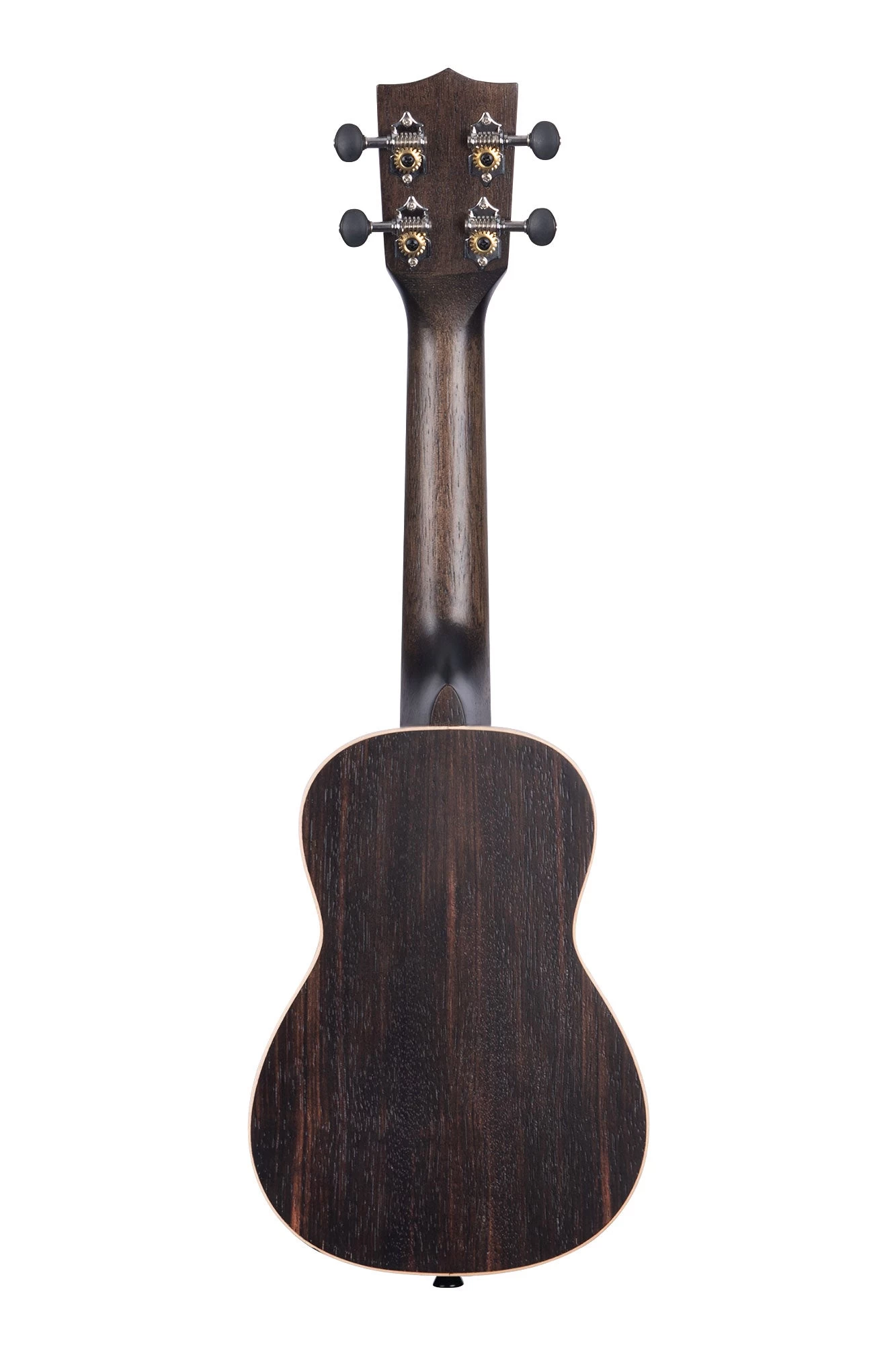 The Ebony line has a deep brown body with reddish-brown striping, finished in satin for a natural look. The light colored Maple rosette and binding creates a nice contrast to the Ebony body.